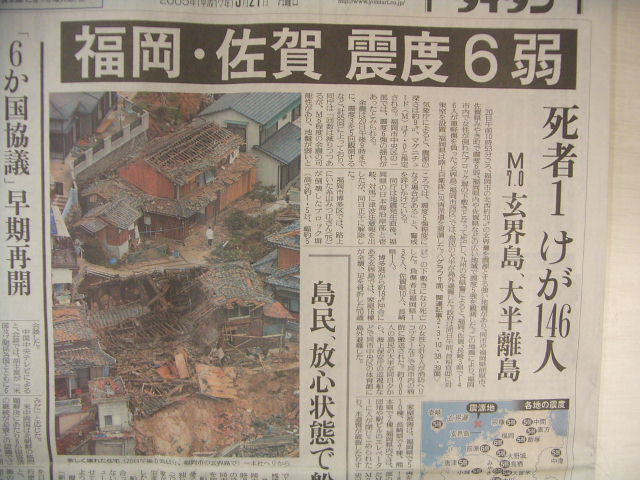 3月20日、午前10時53分ごろ北九州で震度6を記録。