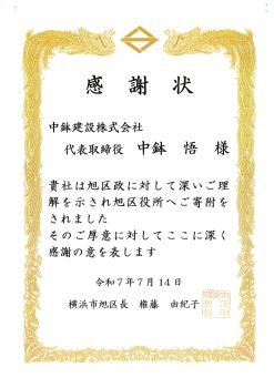 - 2025.10.08 「横浜グランドスラム企業」として中鉢建設が表彰されました